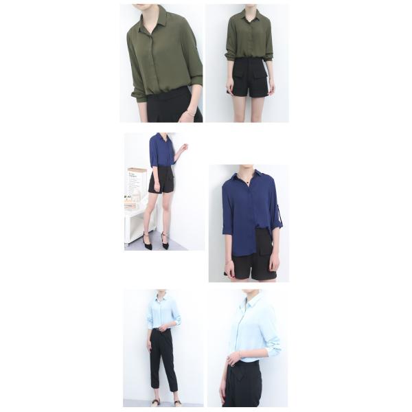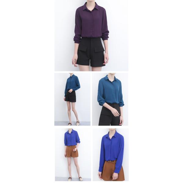 無地シフォンシャツブラウス レディース トップス 長袖 2017 新作涼しげなシフォン素材のシャツブラウスは夏コーデにぴったり♪シンプルなデザインは、幅広いスタイルと相性抜群!綺麗なシルエットで着られます◎【カラー】ネイビー・ワインレッド・レッド・ブルー・カーキ・ブラック・クリーム・パープル・ホワイト・ライトブルー【サイズ】[S]胸囲92/肩幅36.5/丈63/袖丈56.5(cm)[M]胸囲96/肩幅37.5/丈64/袖丈57.5(cm)[L]胸囲100/肩幅38.5/丈65/袖丈58.5(cm)※製品により多少の誤差が生じる場合がございます。【素材】ポリエステル【ご使用上の注意】着用に問題のない製法のほつれ、商品の性格上、開封された商品・一度でも着用されました商品の返品・交換は一切お受け致しません。イメージと違う、サイズが合わない等の理由での返品は一切受け付けておりません。購入後のサイズ交換は対応しておりません。生産終了後すぐ発送しているため匂いがある場合がございます。ご了承ください。【生産国】made in china※商品はご注文を頂いてから2週間前後の到着となります。