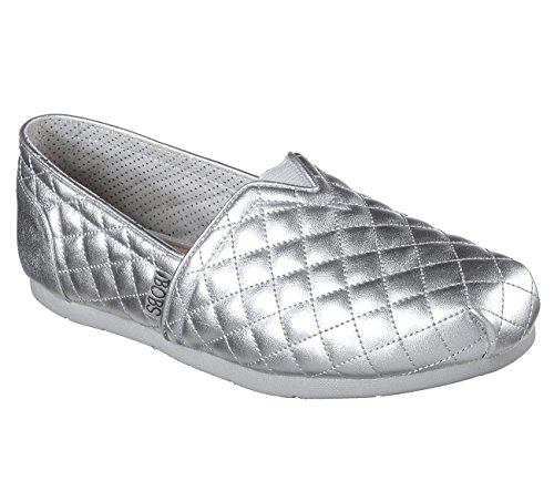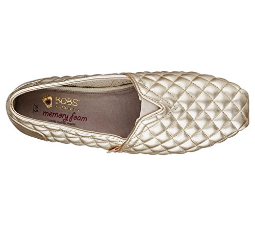 Product Description Add some gleaming style and gorgeous texture easily with the SKECHERS Luxe BOBS - Check Point shoe. Smooth metallic finish faux leather synthetic upper in slip on casual alpargata flat with stitching and overlay accents. Memory Foam insole. 0