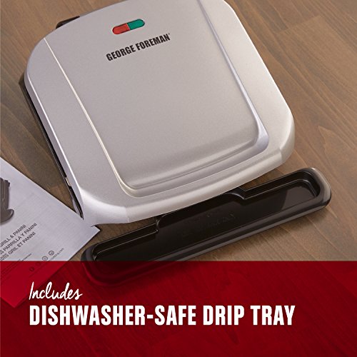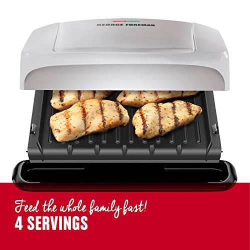 Cook quick and tasty meals for the whole family with the George foreman grp1060b grill. The 4-serving area of the grill is ideal for burgers and chicken for the whole family, or for a smaller meal complete with grilled vegetables. The advanced George tough non-stick coating is 2x more durable than previous models, and removes the need for excess oil and butter. Plus, removable grill plates are dishwasher-safe, making cleanup that much easier. With 35% faster heat-up times than previous models, you can go from plugging in the grill to enjoying a tasty meal in just 10 minutes.Feature