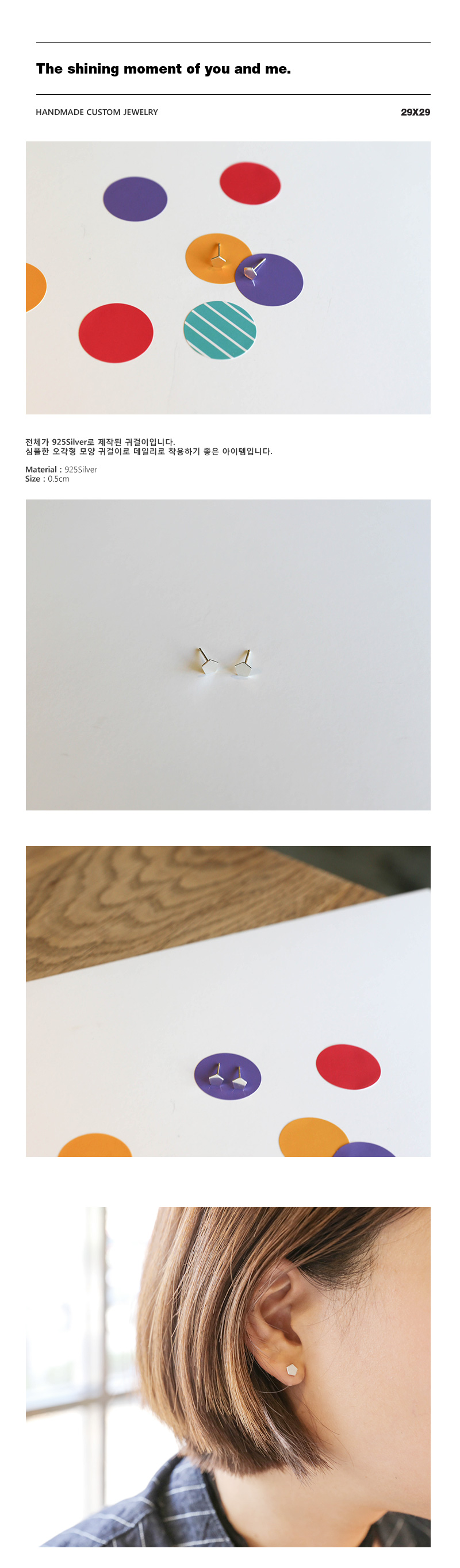 오각형 모양의 귀여운 미니실버 귀걸이입니다.