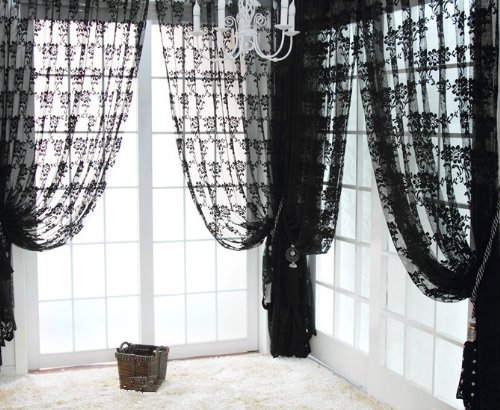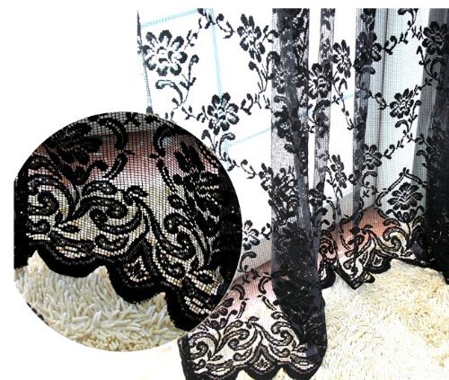 NAVA Black Sexy Rich Vintage French Lace Window Curtain Drape Panel Veil(59"X83")