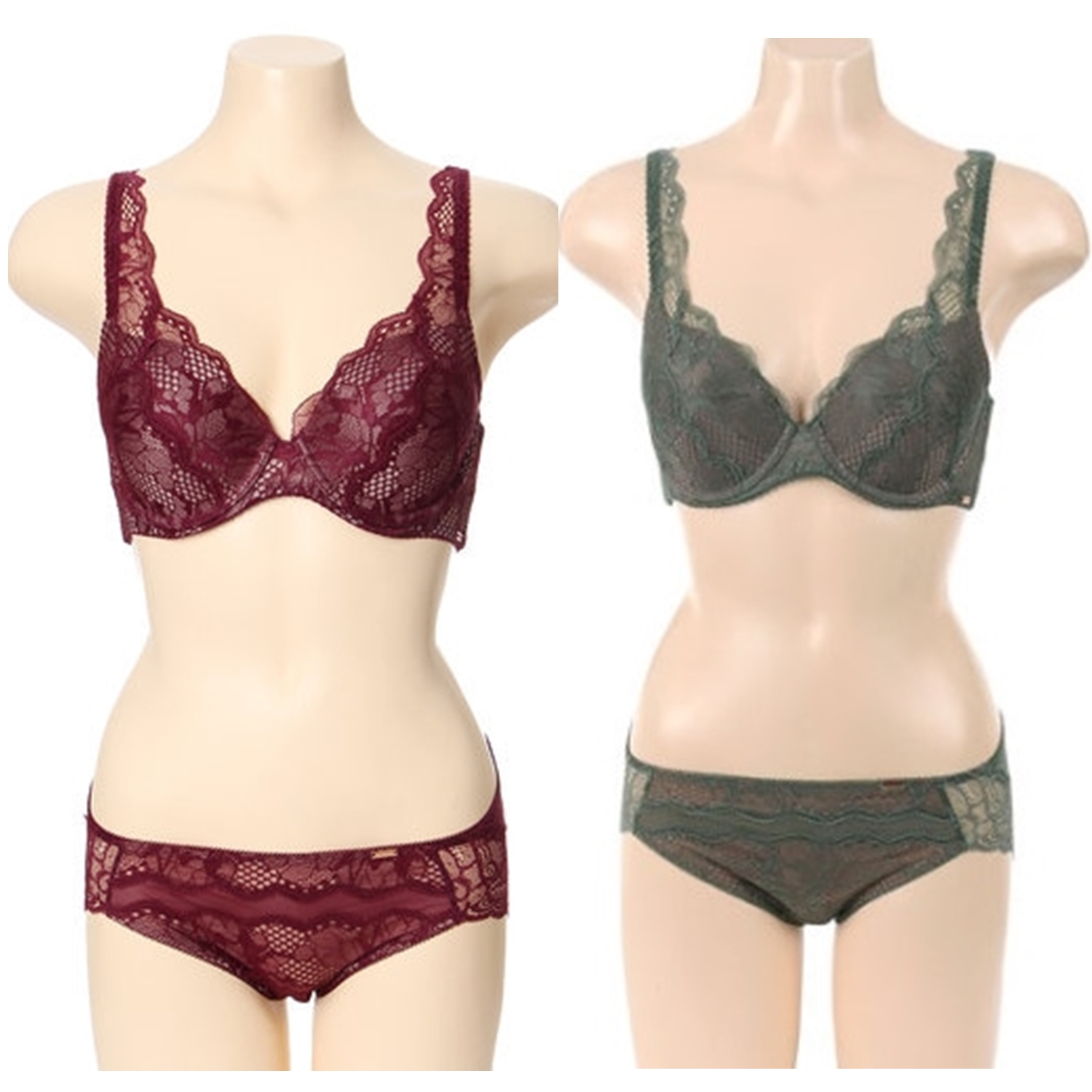 와인과 카키에 브라운컬러 배색으로 포인트를준 브래지어,헴라인팬티 세트 입니다.