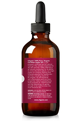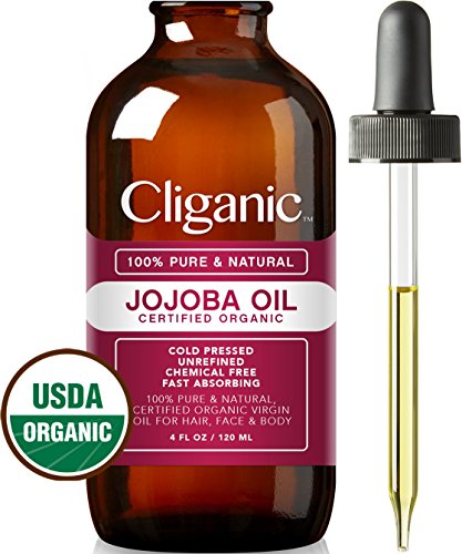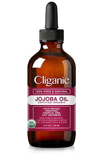 USDA Organic Jojoba Oil, 100% Pure (4oz Large) | Natural Cold Pressed Unrefined Hexane Free Oil for Hair & Face | Carrier Oil - Certified Organic | Cliganic 90...