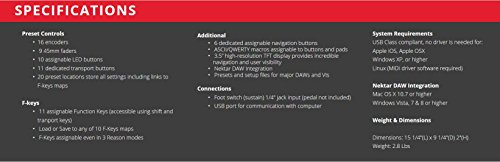 Item Weight:4.13 pounds Product Dimensions:18.9 x 4.7 x 13 inches Shipping Weight:4.15 pounds (View shipping rates and policies) Domestic Shipping:Currently, item can be shipped only within the U.S. and to APO/FPO addresses. For APO/FPO shipments, please check with the manufacturer regarding warranty and support issues. International Shipping:This item can be shipped to select countries outside of the U.S. Learn More ASIN:B00C1QJEH6 Item model number:P1 Customer Reviews:3.7 out of 5 stars 13 customer reviews 3.7 out of 5 stars Best Sellers Rank:#26,167 in Musical Instruments (See Top 100 in Musical Instruments) #22 in Musical Instruments > Recording Equipment > Computer Recording > Digital Audio Workstation Controllers Date first listed on Amazon:March 26, 2013