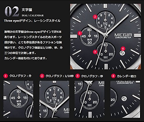 -. Feature : 本体サイズ:直径39mm、厚み:10mm ケース素材:合金 バンド素材:レザー / 精度の高いクオーツムーブメント / 30メートル日常生活防水 (手洗いスプラッシュだけ、雨に濡れるな、シャワー・水泳・ダイビング等には対応していません) / クロノグラフ機能(トリブルダッシュボード) カレンダー表示:日付表示 夜光インデックス / 文字盤はレーシングスタイルなthree eyesデザインで、スポーツ感があります。とても魅力があるファションな腕時計です。※ご購入日から30日以内返品、交換、返金が可能です。ぜひお気軽にお問い合わせてください。