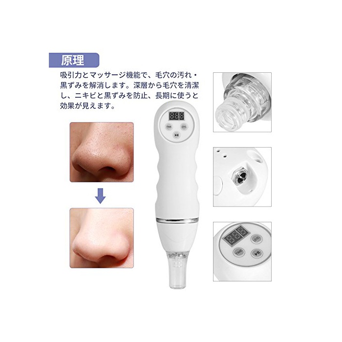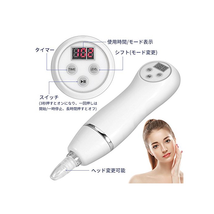 【4종류 헤드 부착에 검은 얼룩의 제거에 최적】이 미용기는 검은 얼룩의 제거에 최적인 툴이다.진공 흡인 시스템에 친절하게 검은 얼룩을 없앤다!검은 얼룩의 제거 이외에도 다른 유능하다.확대한 모공이나 취매물,여드름이나 여드름 흔적에 의한 요철기를 매끄럽게 조절한다!모공 흡인기를 이용하여얼룩,주름,칙칙함 등의 aging 예방 할 수 있는.4종류 헤드 부착에 용도 로 인해 적절히 사용한다