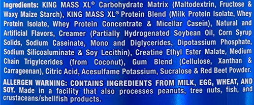 ReleaseDate : 2014-05-27 Studio : Ronnie Coleman Signature Series Publisher : Ronnie Coleman Signature Series Binding : Health and Beauty Product Description In order for your muscles to grow you need to supply them with enough protein to get the job done. King mass xl packs a massive 60g of protein per serving to help keep your muscles fed and in an anabolic state. Getting all of the quality calories you need in one shake without being able to slug it down just doesn't cut it. The king mass xl flavor system delivers a milkshake taste with seamless mix-ability every time making slamming down your shake a treat not a chore. Making the scale go up is all about taking in more calories than you burn but it's also important to get the right kind of calories. King mass xl hits you with 1000 growth accelerating calories per serving providing 60g of quality protein 180g of carbs (only 25 sugars) and healthy fats. In your pursuit of king sized mass you will be hitting the iron like a beast that means you will need king sized recovery. Flooding your muscles with the protein, carbs, glutamine and creatine in king mass xl may support your insulin response leading to more glycogen storage and recovery preparing you for your next brutal workout. 0