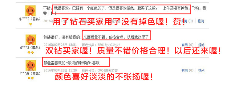 下面是评价中随机抽取的菇凉们的评价,给后面的菇凉们参考一下喔!有钻石卖家的推荐喔!也有新手买家的推荐的!性价比很高的喔!