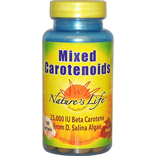 Studio : Nature's Life Publisher : Nature's Life Binding : Health and Beauty Product Description Sun Food Energy 25,000 IU Beta Carotene From D. Salina Algae 1 Daily Dietary Supplement Nature's Life Mixed Carotenoids 25,000 IU Beta Carotene is derived from the unique microalgae, Dunaliella salina. This marine algae is an excellent natural source of mixed carotenoids. Beta Carotene is converted to essential Vitamin A which helps maintain healthy skin and eyes. Beta Carotene is also an antioxidant and helps support a healthy immune system. 0