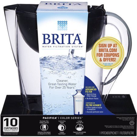 -. Title : Brita 10 Cup Pacifica BPA Free Water Pitcher with 1 Filter, Black