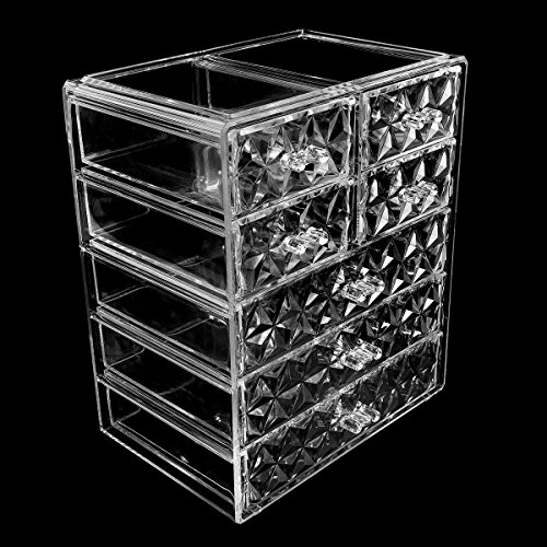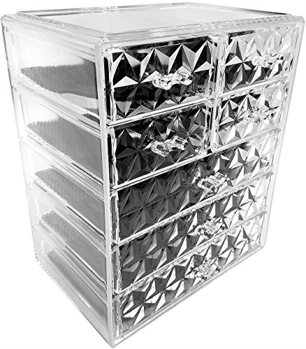 Sorbus Acrylic Cosmetic Makeup and Jewelry Storage Case Display - Spacious Design - Great for Bathroom, Dresser, Vanity and Countertop, Diamond Pattern (3 Large/4 Small Drawers)