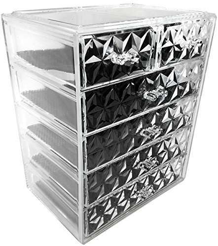 Sorbus Acrylic Cosmetic Makeup and Jewelry Storage Case Display - Spacious Design - Great for Bathroom, Dresser, Vanity and Countertop, Diamond Pattern (4 Large/2 Small Drawers)