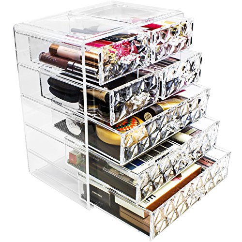 Sorbus Cosmetics Makeup and Jewelry Big Storage Case Display- 3 Large and 4 Small Drawers Space- Saving, Stylish Acrylic Bathroom Case