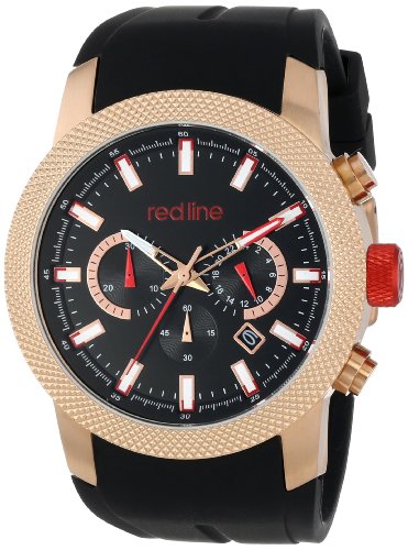 -. Binding : Watch -. Brand : red line -. Color : Black -. Department : mens -. EAN : 0722630228769 -. Feature : Japanese quartz movement / Sapphitek crystal; rose gold tone ion-plated stainless steel case; black silicone strap / Chronograph functions with 30 minute, 60 second and 24 hour subdials; date window between 4:00 and 5:00 / Black dial with rose gold tone and white hands and hour markers; luminous; rose gold tone ion-plated stainless steel textured bezel; red ion-plated stainless steel screw-down crown / Water resistant to 330 feet (100 M): suitable for snorkeling, as well as swimming, but not diving -. Label : red line -. Manufacturer : red line -. Model : RL-10017-RG-01 -. MPN : RL-10017-RG-01 -. PackageQuantity : 1 -. PartNumber : RL-10017-RG-01 -. ProductGroup : Watch -. ProductTypeName : WATCH -. Publisher : red line -. ReleaseDate : 2013-12-17 -. Studio : red line -. Title : red line Men's RL-10017-RG-01 Gauge Analog Display Japanese Quartz Black Watch -. UPC : 722630228769