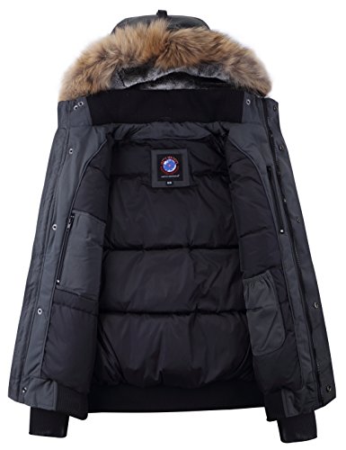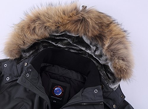 Binding : Apparel Product Description The Alaska mens winter jacket is the most popular winter jacket for men among students and workers for day to day use due to its exceptional mobility, protection and warmth. Its fur lined hoody provides additional warmth to the face in extreme weather conditions. ? Fit: Regular Insulated ? Sizes: S - M - L - XL -XXL ? Fill: 625 fill power white duck down Sizing Chart: MEN S M L XL XXL Chest 36"-37" 38"-40" 41"-43" 44"-46" 47"-51" European 46 48 52 56 60 0