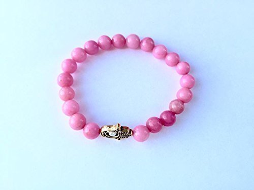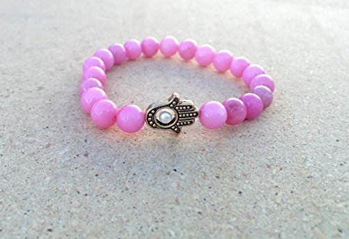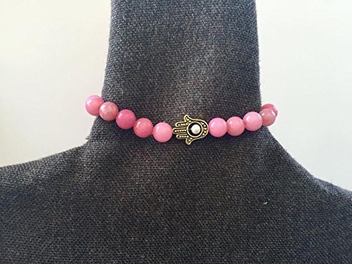 -. Title : 1 6.5" Hamsa stretch bracelet, rhodonite bracelet, gemstone bracelet pink bracelet, hand jewelry, stretch bracelet, womens bracelet, woman bracelet, hippie jewelry boho bracelet, handmade bracelet
