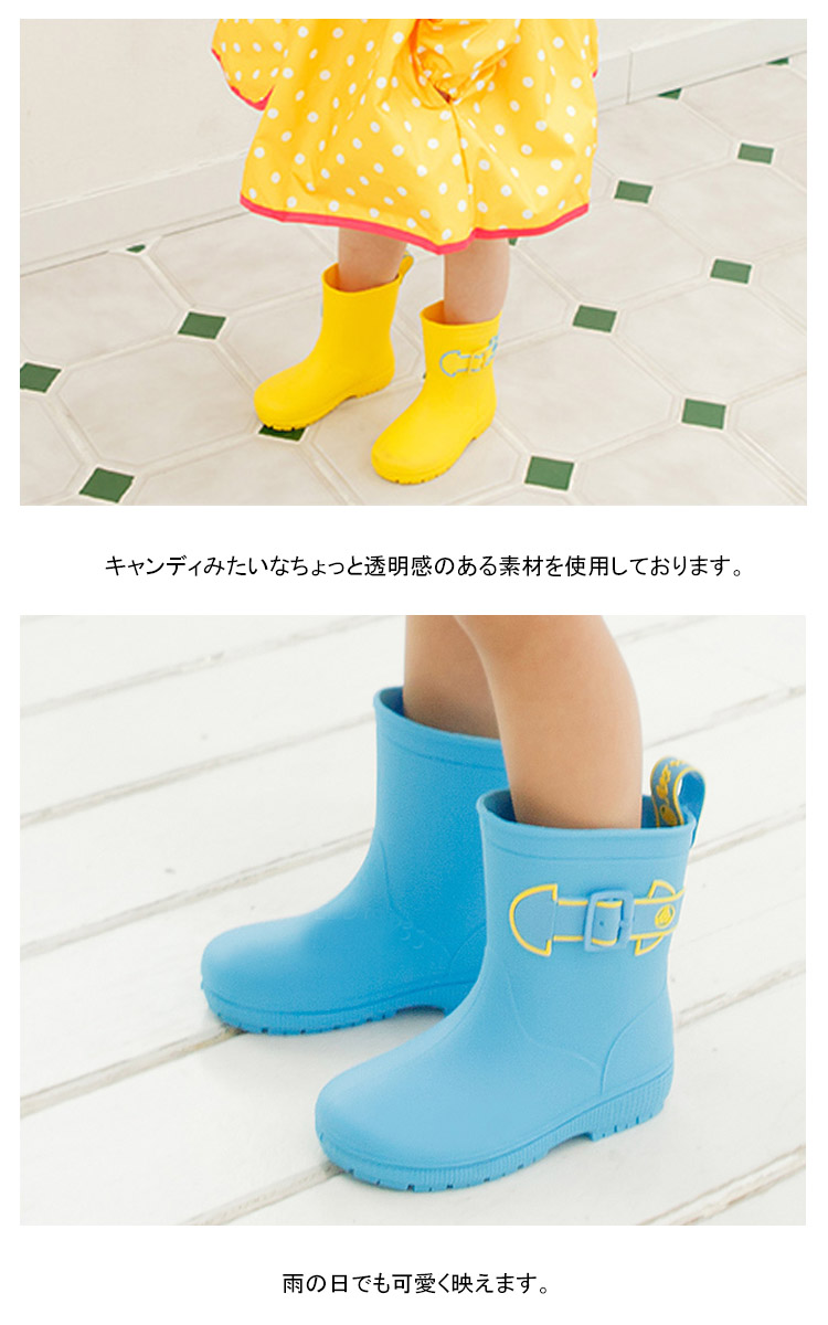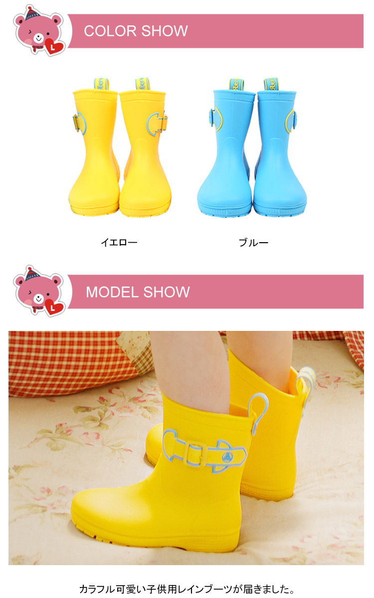 | カラフル可愛い子供用レインブーツが届きました。キャンディみたいなちょっと透明感のある素材を使用しております。雨の日でも可愛く映えます。子供達が、水たまりをジャブジャブ歩いても大丈夫!オシャレなキッズには欠かせないです。 | |
