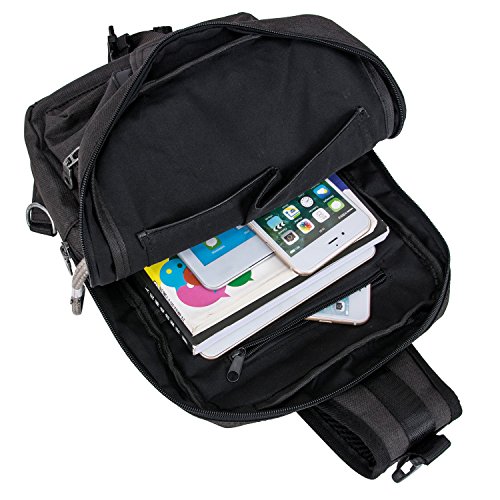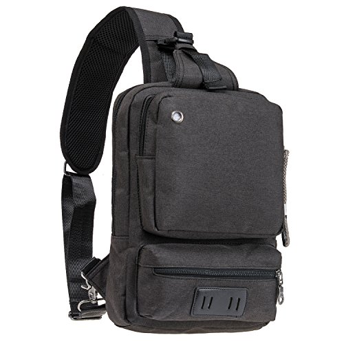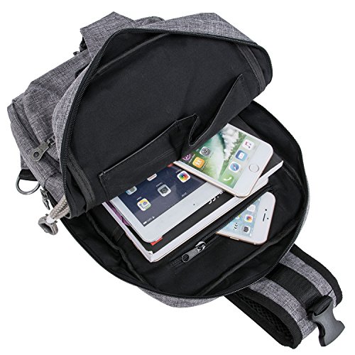 Small yet Spacious sling bag for men women,this bag is a great choice as a travel backpack,shoulder bag,outdoor sport bag,carry on luggage or street/urban style daypack! Durable construction and smart features makes this the perfect bag for anyone looking to stand out at school, while traveling, or just on their way to work. A Must Sling Backpack FOR YOU: Lightweight body.This shoulder backpack is a good size to carry your primary items and make them very organized. Padded shoulder strap reversible - making this the perfect pack for both lefties righties. Specification: Weight:1.1 Pounds Dimension:12.5 X 8.6 X 4.7inches (H*L*W) Color: Black, Gray Package includes: 1 x Sling Bag/Crossbody bag The size above is measured by hand, please allow 0.4-1.1 inch difference. Meanwhile, please remind that due to lighting effects, monitor's brightness, different settings etc, there would be slight differences in the color. Your satisfaction is our highest priority;For any problem, please contact us and we will make effort to solve any issue. 0