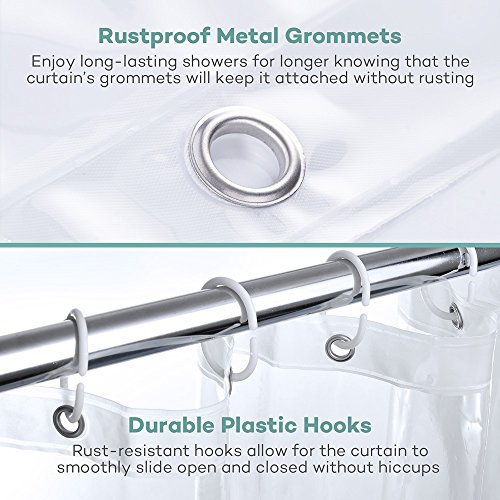 Shower Curtain, Mildew Resistant PEVA Curtain Set with Rustproof Grommets for Bathroom, 6 Gauge Curtain by Sable