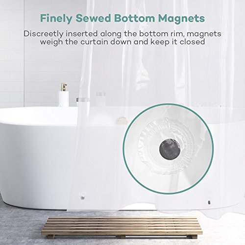 Added Magnets for Added Convenience: 3 x ingeniously inserted magnets allow the shower curtain to stretch all the way to the bottom in order to prevent spilling and the uncomfortable body clinging