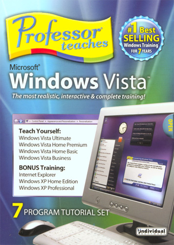 Professor Teaches Microsoft Windows Vista (Old Version) is a seven program tutorial set that helps you teach yourself Windows Vista Ultimate, Windows Vista Home Premium, Windows Vista Home Basic, and Windows Vista Business - along with bonus training in Internet Explorer, Windows XP Home Edition, and Windows XP Professional. Windows Vista offers a new user user interface, enhanced security and privacy, advanced search capabilities, and more - and seamlessly connects you to the applications, information, people, and devices in your life. With Professor Teaches Microsoft Windows Vista, you can build your Vista skills and improve your productivity at work, keep in touch with friends and family, and make your computer more entertaining. The most realistic, interactive, and complete 7 program training tutorial