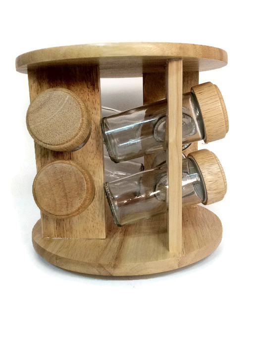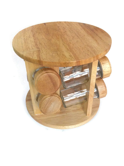 8 pcs Rubberwood Spice Rack Glass Jar Storage Tool is the best quality tool for baking and cooking to store spices & other stuff perfectly.