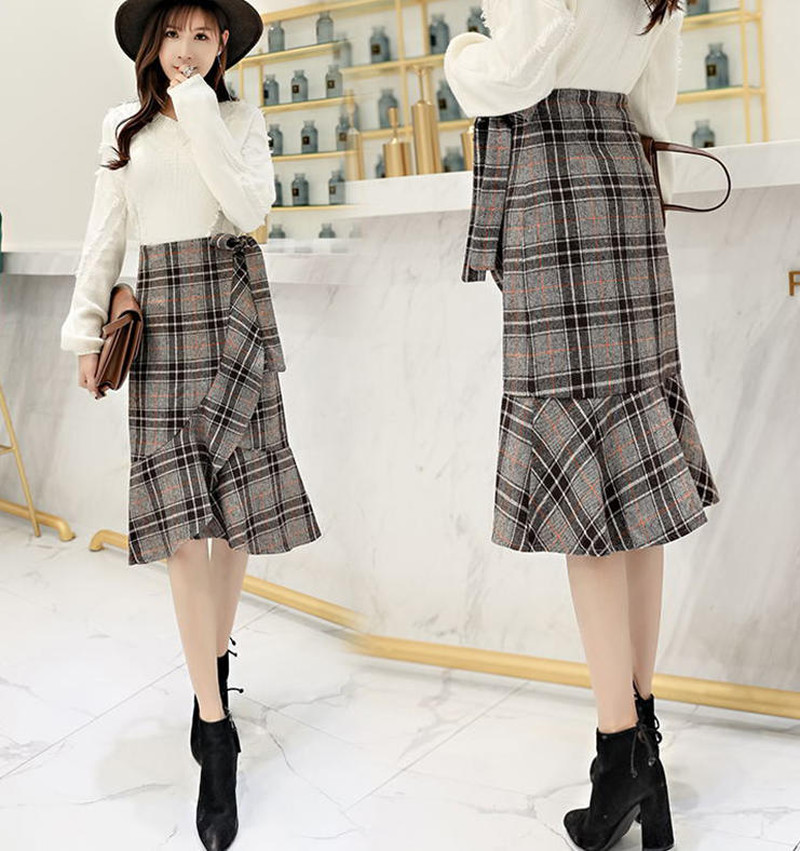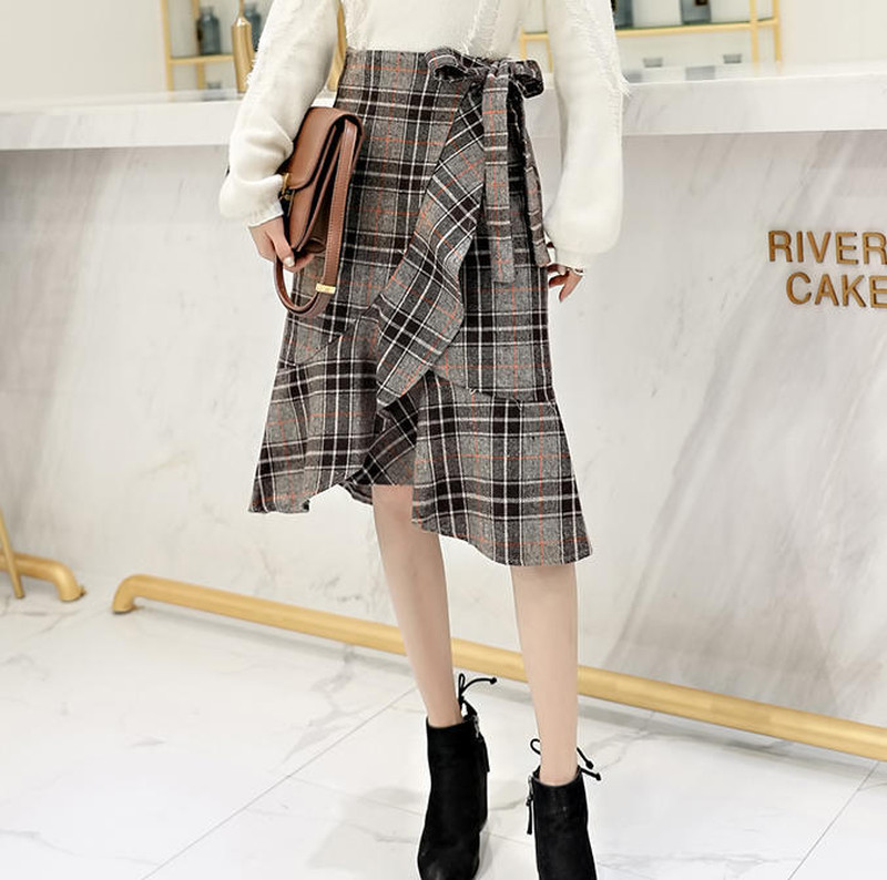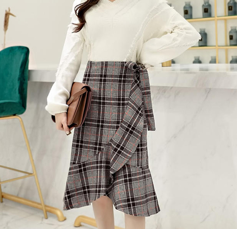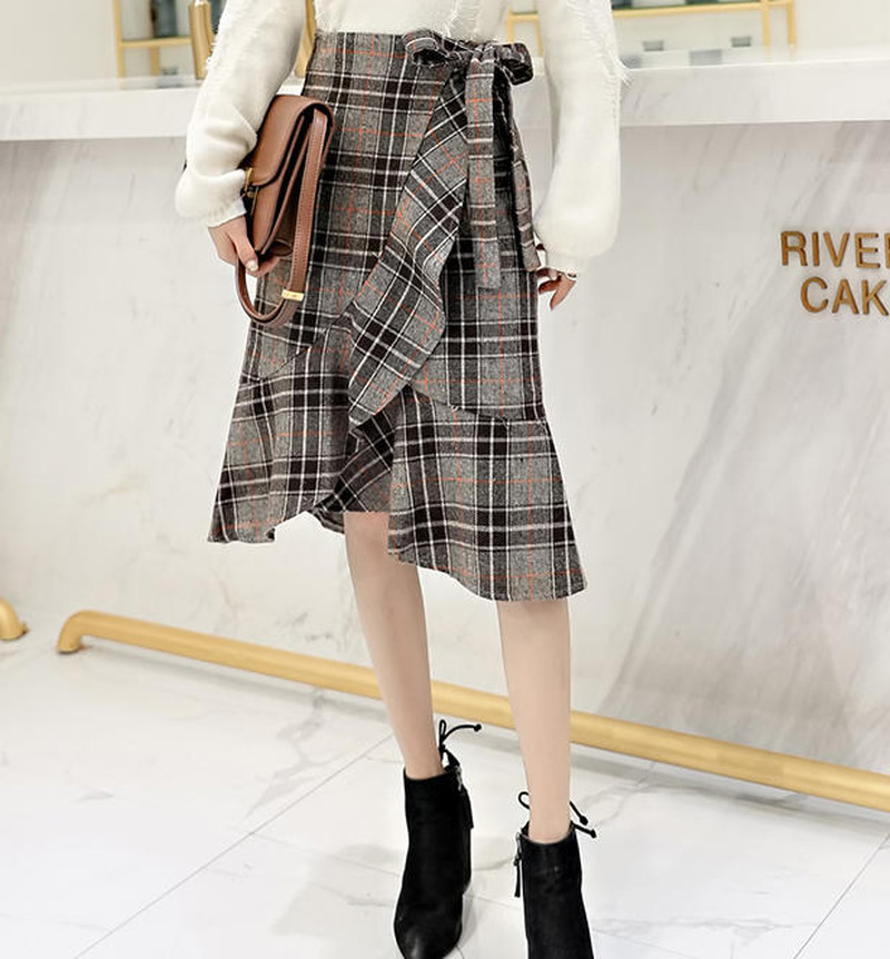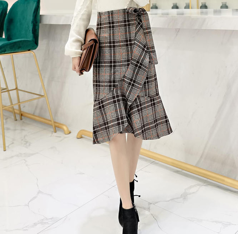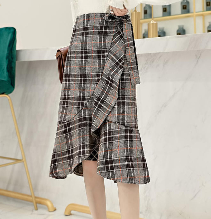 ♢ポイント♢ 大人可愛いグレンチェック柄のスカートです。 フィッシュテールシルエットが動くたび揺れて印象的な足元に◎