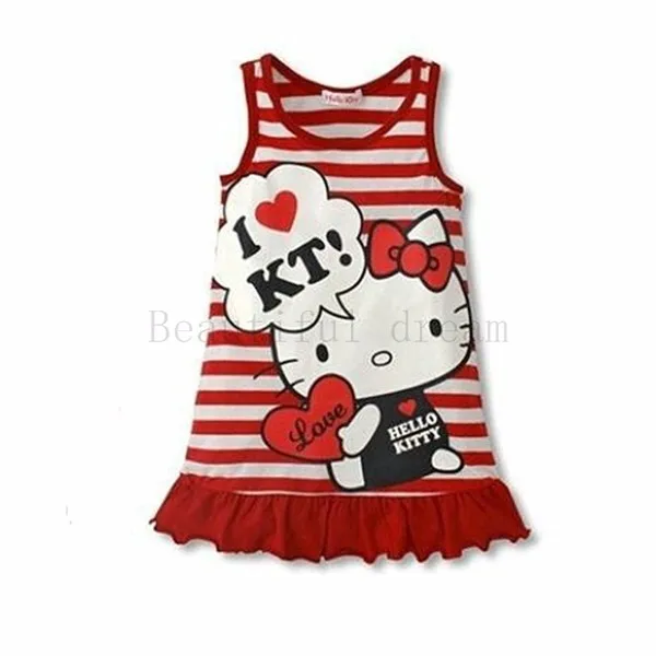 Hello Kitty Style Cartoon Pattern Summer Kids Dress Princess Girl Dress For Party Costume For Girls Dresses Children Clothing
