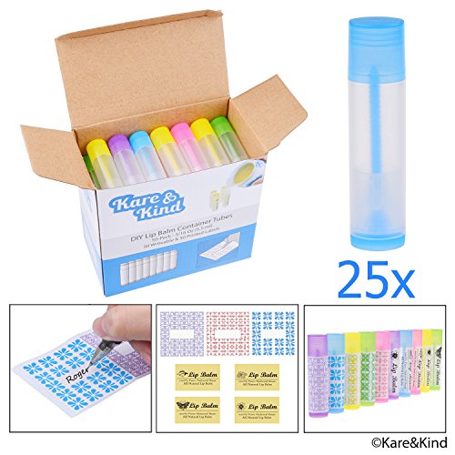 LABELS INCLUDED - Each of the 25 Lip Balm Container Tubes can be labelled. You can choose between 2 types of labels: writeable and printed. Use the writeable labels to personalize your Lip Balm Containers or choose the printed labels for that classic lip balm look.
