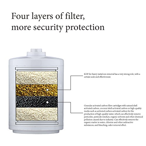 Removes over 99% of the Chlorine in your water. Prevents Bacterial Growth.The KDF granules also remove or reduce hydrogen sulfide, microorganisms, scale and water-soluble heavy metals such as lead, mercury and iron. KDF process media also kill bacteria and inhibit the growth of bacteria, algae and fungi. As an added benefit, KDF media reduce lime scale, mold and fungi in your shower. KDF process media are completely safe so the process is not toxic and does not cause any adverse side effects. Effective for both hot and cold water.
