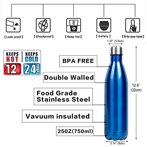 VACUUM INSULATION - Double wall vacuum insulated technology design, keep hot up to 12 hours, keep cold up to 24 hours, keep your drink refreshing. Easily enjoy a cup warm coffee in cold winter, enjoy fresh cold water in hot summer. 25oz (750ml ) Large water bottle, enough water, keeping you hydrated anytime everywhere.