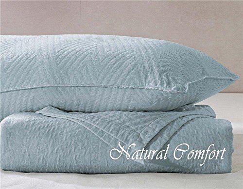 Natural Comfort Matelassé Blanket Coverlet, Queen, Grid/Water Blue