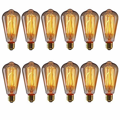 KINGSO Vintage Edison Bulbs 40W Squirrel Cage Filament Incandescent Antique Light Bulb for Home Light Fixtures E27 Base ST64 110V - 12 Pack