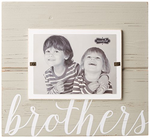 Painted pine wood frame features printed "brothers" sentiment, beveled distressed accent line and edge, painted wood mat and holds 5" x 7" photo inserted at front