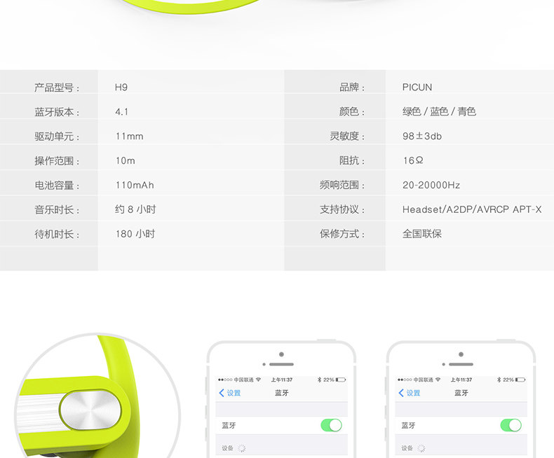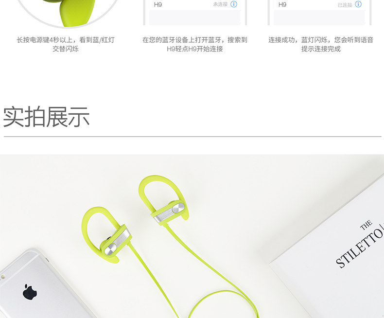H9挂耳式蓝牙耳机 双入耳式无线运动跑步音乐通话耳麦