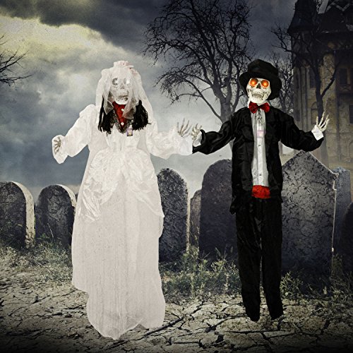 -. Title : Halloween Haunters 66" Animated Standing Scary Skeleton Bride and Groom Prop Decoration - Moving Arms, LED Eyes, Wedding Moans and Ghoulish Cries
