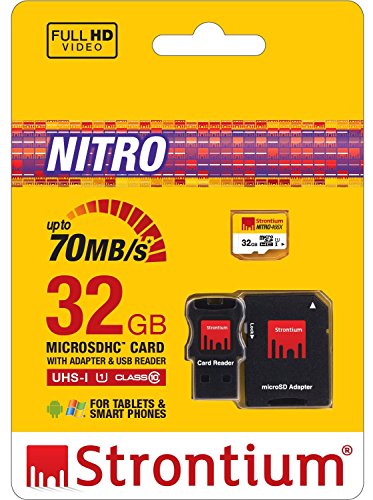 Strontium Nitro 32GB MicroSDHC UHS-I Memory Card with Adapter and Card Reader Up to 70MB/s (SRN32GTFU1C)