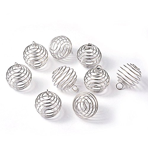 Honbay 20Pcs Silver Plated Spiral Bead Cage Charms Pendants Findings for 18-25mm Beads