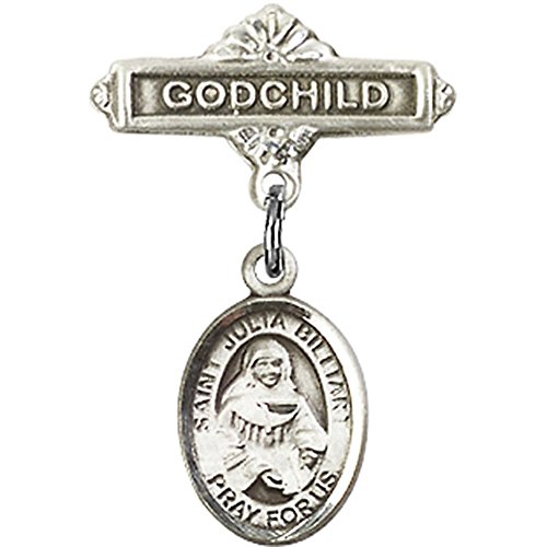 -. Title : Sterling Silver Baby Badge with St. Julia Billiart Charm and Godchild Badge Pin 1 X 5/8 inches