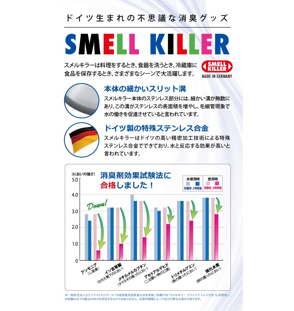 Smelkiller is a mysterious deodorant goods made of special stainless steel alloy born in Germany.