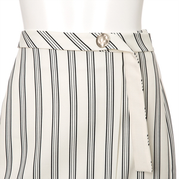 허리벨트은 오픈클로징이 아닌 고정되어있는 디테일이며 스트라이프가 절제미있게 되어있어서 심플한 느낌과 세련된 느낌까지 느낄실수 있는 디자인입니다.