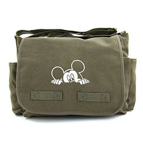 -. Brand : Grab A Smile -. Department : unisex-adult -. Feature : 2 inch Wide Adjustable Shoulder Strap, Comfortable to Carry, Brass hardware / Four Outside Pockets - Great for water/milk bottles, car keys, and wallets / Inside Zipper Pouch, Stonewashed 100% cotton canvas / Enormous Main Compartment, will hold a 15.6 inch laptop / Dimensions: 15" x 11" x 6" -. Label : Grab A Smile -. Manufacturer : Grab A Smile -. Model : CBCMG-333-P -. MPN : CBCMG-333-P -. PackageQuantity : 1 -. PartNumber : CBCMG-333-P -. ProductGroup : Apparel -. ProductTypeName : LAGE -. Publisher : Grab A Smile -. Size : One Size -. Studio : Grab A Smile -. Title : Mickey Mouse Peeking Army Heavyweight Canvas Messenger/Diaper Shoulder Bag