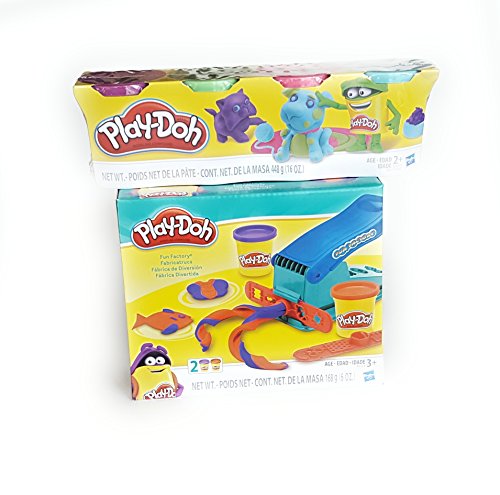 The Play Doh Fun Factory encourages creativity and imagination. Provides endless possibilities for your child. In addition to the box Fun Factory, you get 4 extra cans of Play Doh, making 6 total.Feature