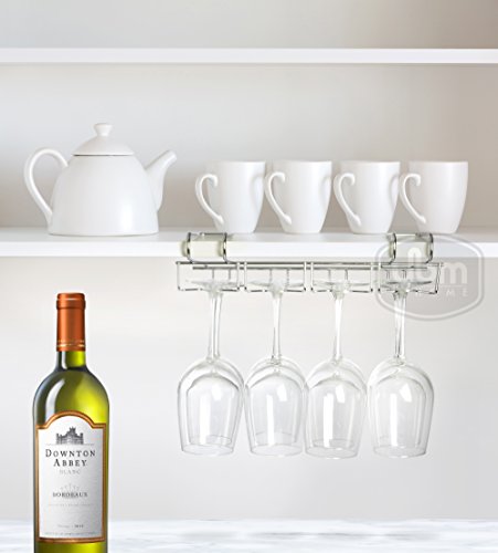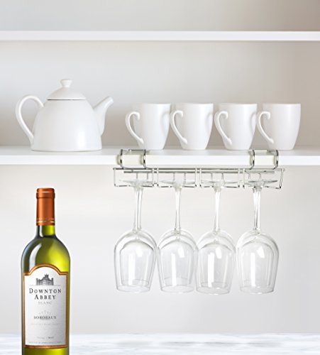 UNDER CABINET WINE GLASS RACK mounts directly under cupboard for visible storage of your favorite glassware– Wine glass rack is designed to fit 3-inch diameter bases, Stores 6- 9 of your favorite stemmed wine glasses (depending on the size of the wine glass)