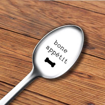 - We have specially designed this spoon with the message "BONE APPETITE" with cute little "bone" image.