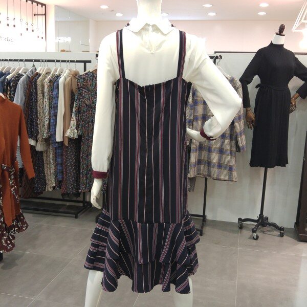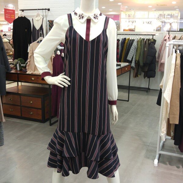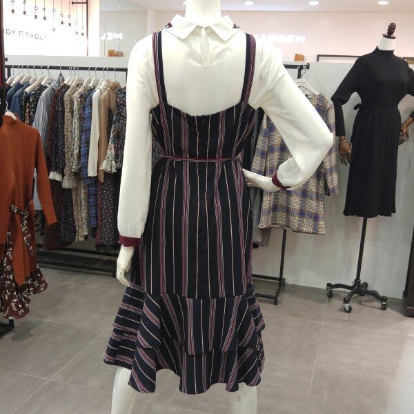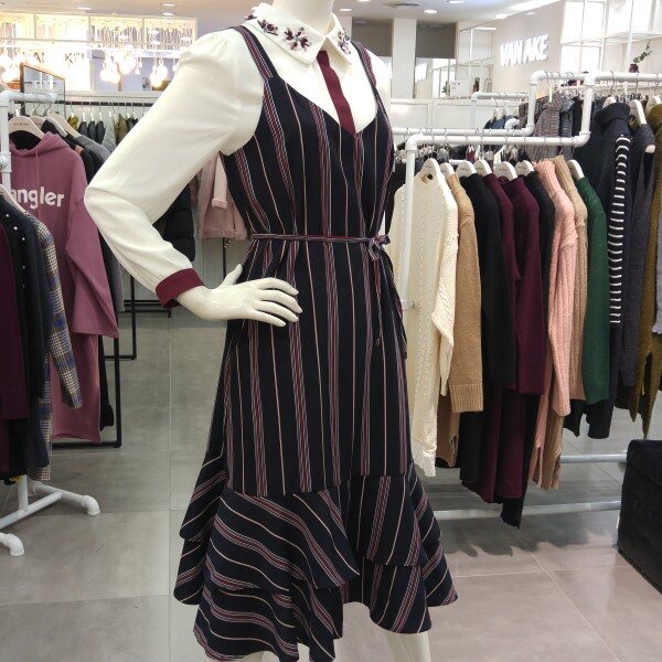 캉캉 뷔스티에끈 원피스로 깔끔한 패턴의 허리끈 라인포함된 원피스 입니다