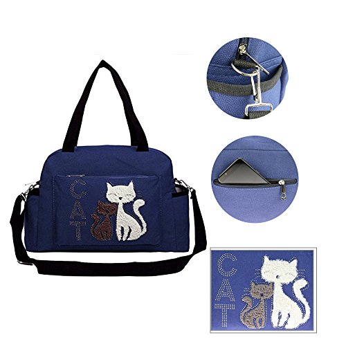 Handbag for Women Canvas Cute Cartoon Cat Tote Bag Crossbody Purses Multi-Function Waterproof Travel Backpack Nappy Bags for Baby Care Large Capacity