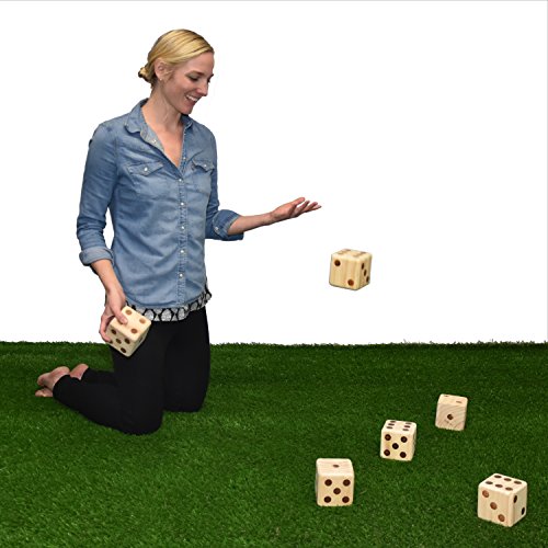GoSports Giant Wooden Playing Dice Set for Jumbo Size Fun (Includes 6 Dice and Canvas Carrying Bag)