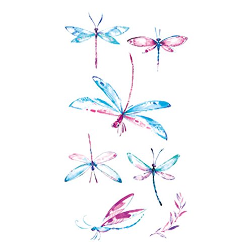 Set of 5 Waterproof Temporary Fake Tattoo Stickers Blue Pink Dragonfly Design