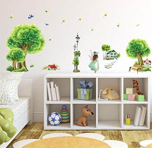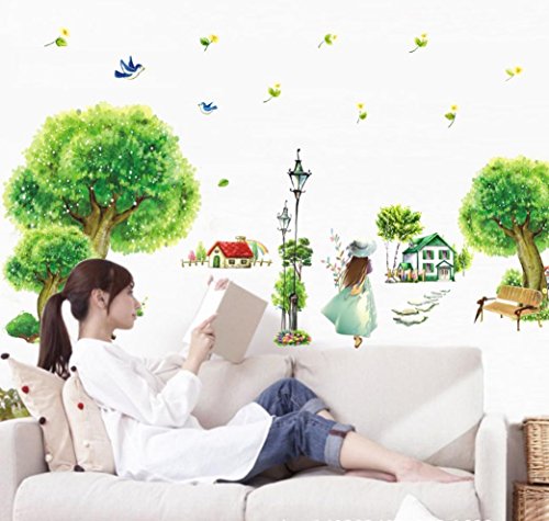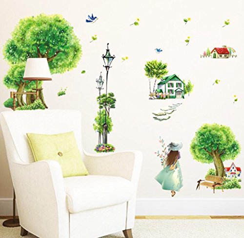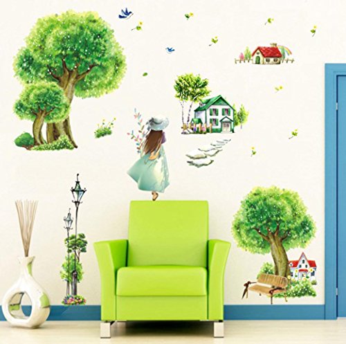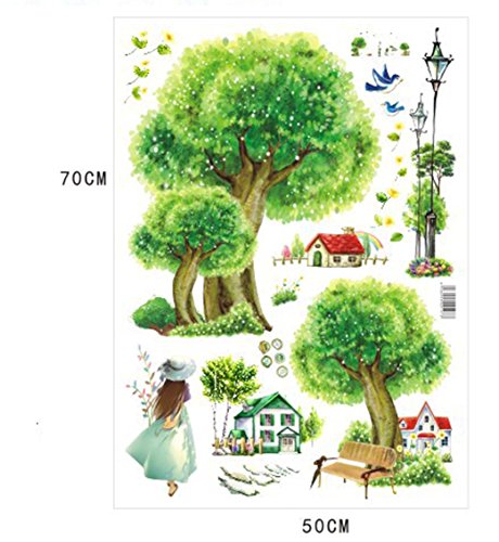 -. Binding : Kitchen -. Brand : BIBITIME -. Color : Multi -. Department : unisex-adult -. EAN : 6852582464596 -. Feature : Original Packing Size:50 * 70 cm & 19.68" * 27.56" / DIY Size approx: 135 * 65 cm & 53.5" * 25.59" (Defined size is normal, please mainly in kind) / This style wall decal is sure to bring your living room with a feeling of cool and peace. Gather your families here and have fun. / Special design for this is decorative and make your room special. It will give an amazing touch to your home interior. / A beautiful wall art wall decal for your home or office will give your room a refreshing look, create an enchanting atmosphere. -. IsAdultProduct : 0 -. Label : BIBITIME -. Manufacturer : BIBITIME -. Model : 2055 -. MPN : 4328046072 -. PackageQuantity : 1 -. PartNumber : 4328046072 -. ProductGroup : Baby Product -. ProductTypeName : HOME -. Publisher : BIBITIME -. Size : DIY Size approx: 53.5" * 25.59" -. Studio : BIBITIME -. Title : BIBITIME Mountain village Countryside House Green Tree Wall Decal Sticker for Kids Room Decor Nursery Bedroom Street Lamp Girls Flying Birds Art Wallpaper